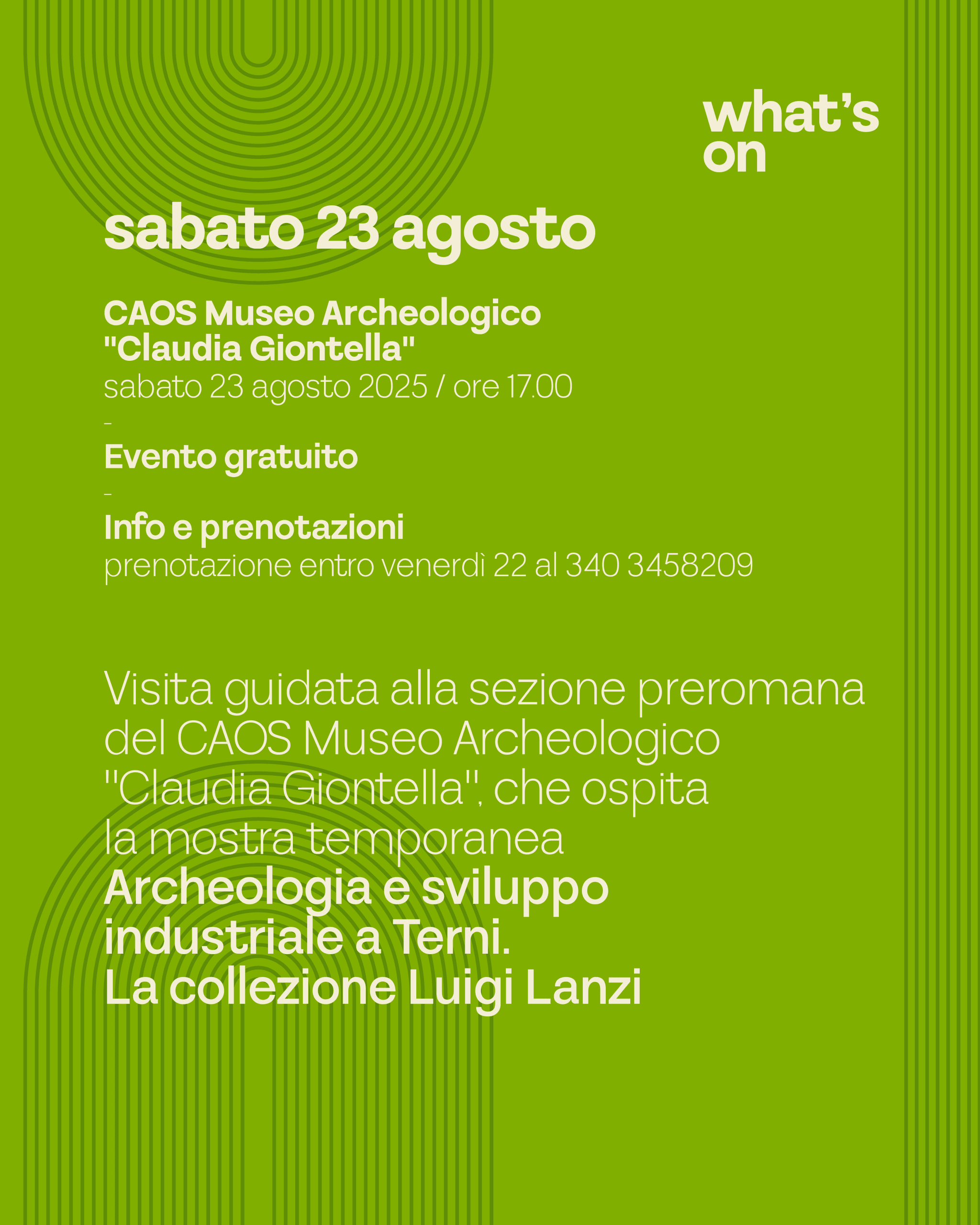 visita guidata alla sezione preromana del CAOS Museo Archeologico "Claudia Giontella", che ospita la mostra temporanea "Archeologia e sviluppo industriale a Terni. La collezione Luigi Lanzi"